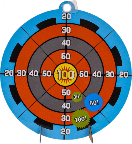 Farverig målskive med pointmarkering inviterer til leg om point. Udvikler koncentration, koordination og fair play-konkurrence.