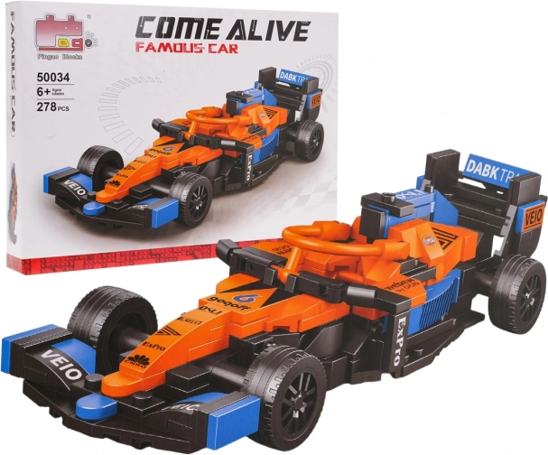 Byg din egen racerbolid med dette byggesæt på 278 dele i orange-blå udførelse. Modellen har bevægelige dele som justerbar spoiler og styrbare hjul med gummidæk. Der er også en trofast gengivet kabine og en billedvejledning. Perfekt til børn fra 6 år – udvikler finmotorik, rumlig forståelse og tålmodighed.