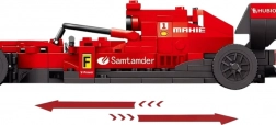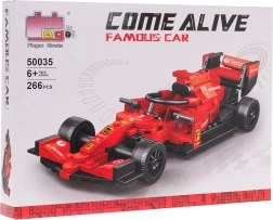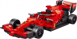 Komplet sæt klodser i kvalitetsplast gør det muligt at bygge en detaljeret rød bil inspireret af F1 – ideel til leg og udstilling.