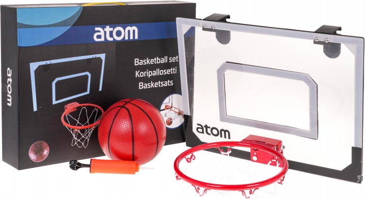 Komplet basketballsæt til børn fra 8 år og voksne. Indeholder bagplade, metalring med net, bold og pumpe. Takket være krogene kan det nemt hænges på en dør eller væg. Sættet er lavet af materialer i høj kvalitet, bagpladen er slagfast, og den metallicerede ring sikrer lang levetid. Perfekt til aktiv underholdning og udvikling af sportslige færdigheder derhjemme og på farten.