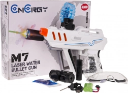 Kuglerne forberedes nemt – hæld vand over dem og lad dem svulme i nogle timer til en diameter på 7–8 mm. I pakken finder du beskyttelsesbriller for sikrere leg, et genopladeligt batteri 7,4 V 500 mAh og et USB-kabel til praktisk opladning.