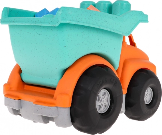 Farverig øko-dumper med klodser i robust bioplast til børn fra 3 år tilbyder sikker leg, bevægelig lad og store, fritløbende hjul. Sættet indeholder 7 klodser til byggeri og udvikling af finmotorikken. Materialet er miljøvenligt, legetøjet har afrundede former og livlige farver.