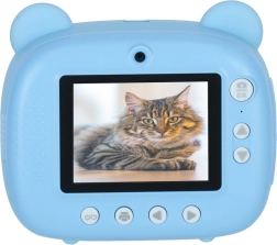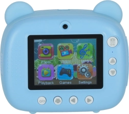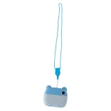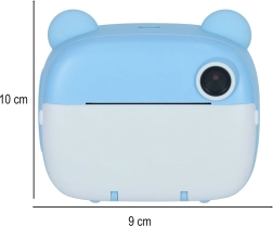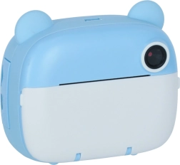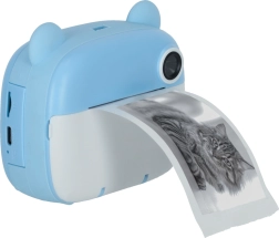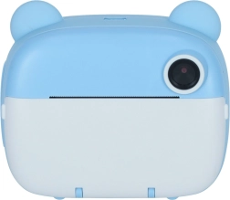 Sødt børne‑instantkamera i design som en blå bamse, som takket være den indbyggede termoprinter straks udskriver sort/hvide billeder. Det har to objektiver, optager 1080p‑video, og i pakken finder du et 32 GB‑kort, 3 ruller papir, 6 tuscher samt en halsrem.