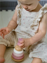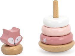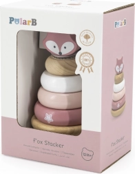 Tiltalende pasteller og det øverste stykke med ræv motiverer børn til at stable og lære farver og størrelser.