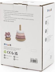 Denne træstabel-legetøjspyramide tilbyder 6 dele i blide pastelfarver, inklusive det øverste stykke med rævehoved. Børn trækker ringene på midterpinden efter størrelse, farve eller fantasi – og træner dermed logisk tænkning, tålmodighed og rumlig forståelse.