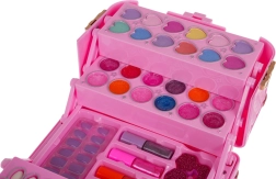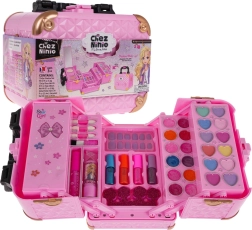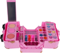 Makeup-sæt til børn med kuffert vil glæde små pyntedukker fra 3 år. Den praktiske kuffert med lås og håndtag gemmer på et farverigt udvalg: lipgloss, øjenskygger, læbestift, pudder, neglelak med glitter, børstesæt, kunstige negle, tåseparator og et spejl. Kosmetikken er lavet af sikre materialer og er nem at vaske af.