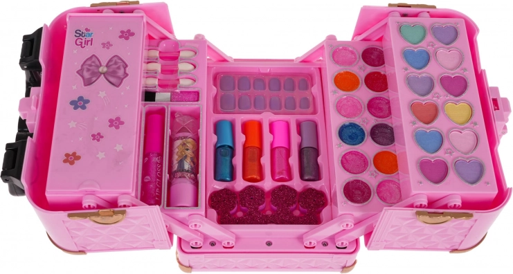 Giv børn kreativ underholdning med et veludstyret makeup-sæt i en transportabel kuffert. Børn kan trygt afprøve deres første makeup, udvikle fantasi og finmotorik. Alle komponenter er designet til børnehud og kan nemt fjernes med vand.