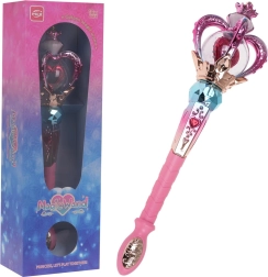 Denne magiske stav – scepter – er et fantastisk tilbehør til små prinsesser og eventyrelskere. Med det iøjnefaldende hjerte, der roterer og lyser i flere farver, samt behagelige melodier, inspirerer den til kreativ leg og udvikler fantasien. Konstruktionen af sikre og holdbare materialer sikrer lang levetid og et behageligt greb.