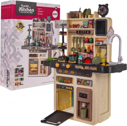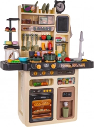 Dette rummelige legekøkken forvandler værelset til et lille gastronomisk værksted. Børnene vil elske realistiske elementer som belyste kogeplader med stegelyde og kogelyde, damp fra en af kogepladerne og hane med rindende vand. Åbn ovnen, læg madvarerne i køleskabet med vanddispenser, drej betjeningsknapperne, og tænd emhætten med lydpanel.