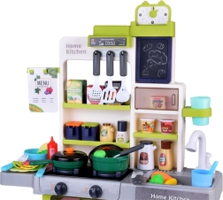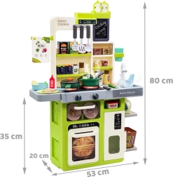 Leg med dette køkken er ekstra sjov takket være funktioner som baggrundsbelyste kogeplader, kogelyde og dampeffekt, der stiger fra gryderne og efterligner rigtig madlavning. Børn kan også “vaske” gryder ved hjælp af vandhanen, hvilket gør legen endnu mere autentisk.