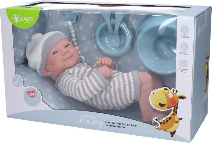 Oplev magien ved at lege med dukken Baby med Natpotte. Denne realistiske dukke på 35 cm er den ideelle ledsager for hvert barn, der ønsker at udforske pleje af en baby. Indeholder: