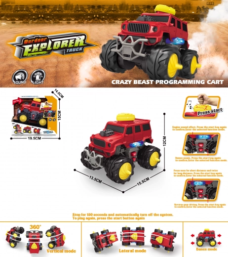 Nyd actionfyldt kørsel derhjemme og på farten. De kompakte mål 15,5 × 13,5 × 12 cm og kombinationen af lys, lyd og bevægelse gør denne terrængående bil til en attraktiv model til daglig leg.