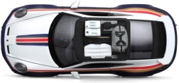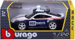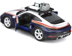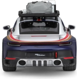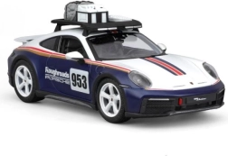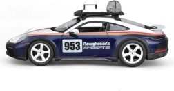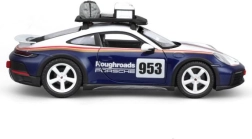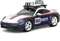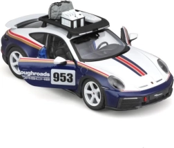 Giv dig selv eller børnene glæde med en realistisk model af Porsche 911 Dakar i skala 1:24. Denne die-cast model i blå, hvid og røde striber imponerer med præcise proportioner, Roughroads-emblemer og det ikoniske nummer 953. Den metalbaserede konstruktion kombineret med plastdetaljer sikrer både robusthed og trofasthed mod forbilledet.