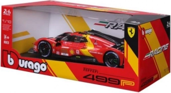 Den ikoniske prototype FERRARI 499P i topkvalitet fra BBurago byder på realistisk udførelse, der fremhæver bilens racer-DNA: markante linjer, bagvinge, indsugning og præcise replikationer af sponsorlogoer. Metaldele suppleres af plastdetaljer for maksimal trofasthed mod originalen.