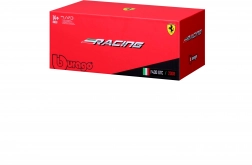 Det robuste metalkarosseri suppleret af plastdele, rullende hjul og omhyggeligt udførte eksteriørdetaljer (spejle, vinge, diffuser) understreger det realistiske look. Modellen leveres i original Ferrari Racing-emballage, så den er klar som en stilfuld gave til motorsportsentusiaster.