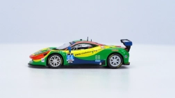 Modellen prydes af detaljerede sponsortryk og startnumre inspireret af ægte GT3-løb, hvilket forstærker det realistiske udtryk i vitrinen.