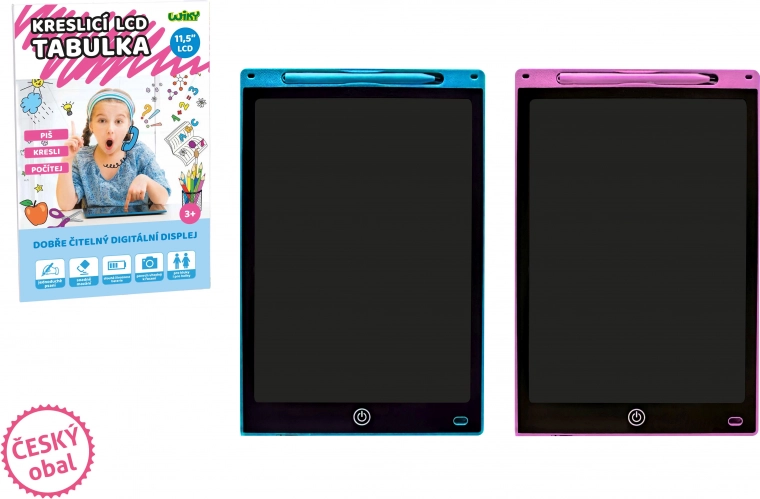 Praktisk tegne-LCD-tavle med en skærmdiagonal på 30 cm (11,5") til både børn og voksne. Den tilbyder farveskrivning, hurtig sletning med ét tryk og lås mod sletning for at beskytte dine noter og tegninger. Ideel til tegning, beskeder, planlægning og læring – derhjemme, i skolen og på farten.