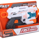 Nyd masser af sjov med pistoler til skumammunition. Denne pistol er udstyret med 12 projektiler lavet af blødt skum, hvilket sikrer sikker brug for dine børn. Den enkle træk-op ladning gør den let at håndtere og giver hurtig action. Pistolen leveres med en illustreret brugsanvisning på forsiden af emballagen, hvilket gør den nem at samle og bruge.