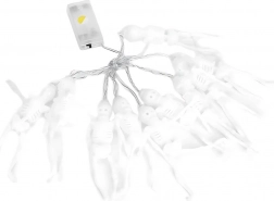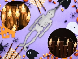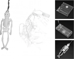 En stilfuld lysdekoration, der på et øjeblik forvandler både interiør og beskyttet udendørsområde til en mystisk halloweenstemning. Hvert af de 10 miniskeletter har en separat LED-diode, hvilket giver et jævnt lys langs hele kædens længde. Den varme hvide farve skaber en behagelig, men stadig uhyggelig glød.