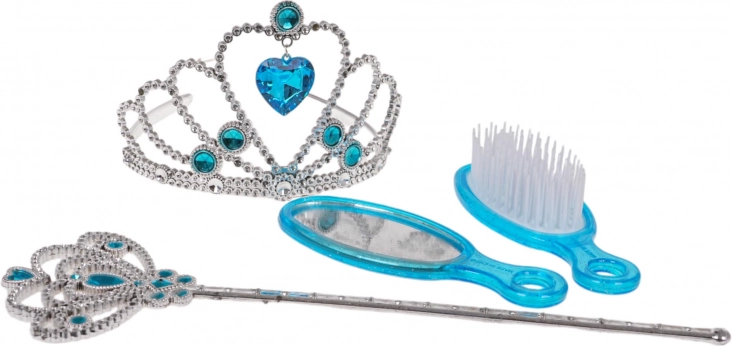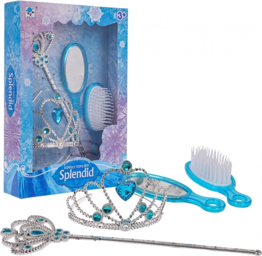 Et fortryllende sæt til små prinsesser fra 3 år vil glæde enhver eventyrelsker. Sættet indeholder tiara, tryllestav, spejl og hårbørste med elegant blå pynt. Sikker udførelse, materialer af høj kvalitet og magiske glitrende detaljer stimulerer fantasien og rollelege.