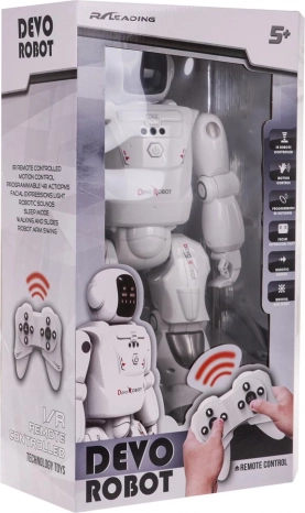 En sjov og interaktiv robot med fjernbetjening til børn fra 5 år giver timevis af leg og læring. Den tilbyder styring via RC-fjernbetjening og håndbevægelser, gang og kørsel i alle retninger, dans og programmering af egne bevægelsessekvenser. Kvalitetsplast, digitalt display på hovedet og lyd­effekter gør robotten til en fantastisk makker på børneværelset.