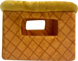 Plyslegetøjet er lavet af 100% polyester, hvilket sikrer dets blødhed og sikkerhed for børn. Kurven er også forstærket med plast for bedre stabilitet. Dette produkt er egnet til børn fra 2 år og er nemt at vedligeholde - det kan håndvaskes og renses med en fugtig klud.