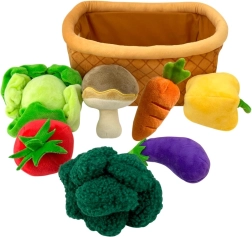 Magic Baby Grøntsager i kurv er et fantastisk tilskud til børnekøkkenet eller legetøjsbutikkerne. Dette sæt indeholder syv kvalitetslavede plyslegetøj, der inspirerer børns fantasi og kreativitet i leg.
