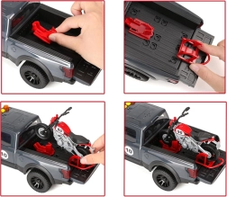 Den bageste del af pickuppen har en aftagelig motorcykel, hvilket giver endnu flere interaktive lege-muligheder.