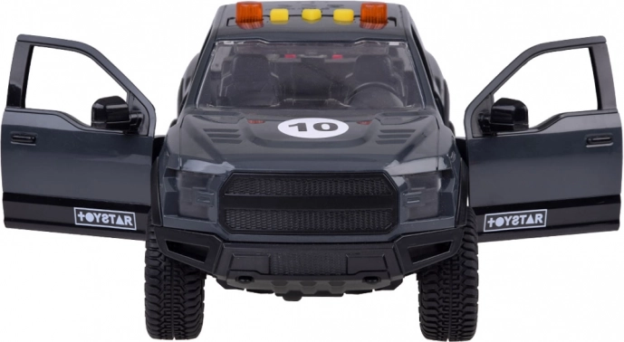 Pickup-legetøjet er designet til at give børn plads til kreativ leg. På den bageste holder sidder en aftagelig motorcykel, som øger legetøjets interaktivitet. På bilens tag er der tre knapper, som aktiverer blinkende lys for realistiske oplevelser. Legetøjet understøtter børns kreativitet, finmotorik og fantasi.