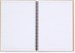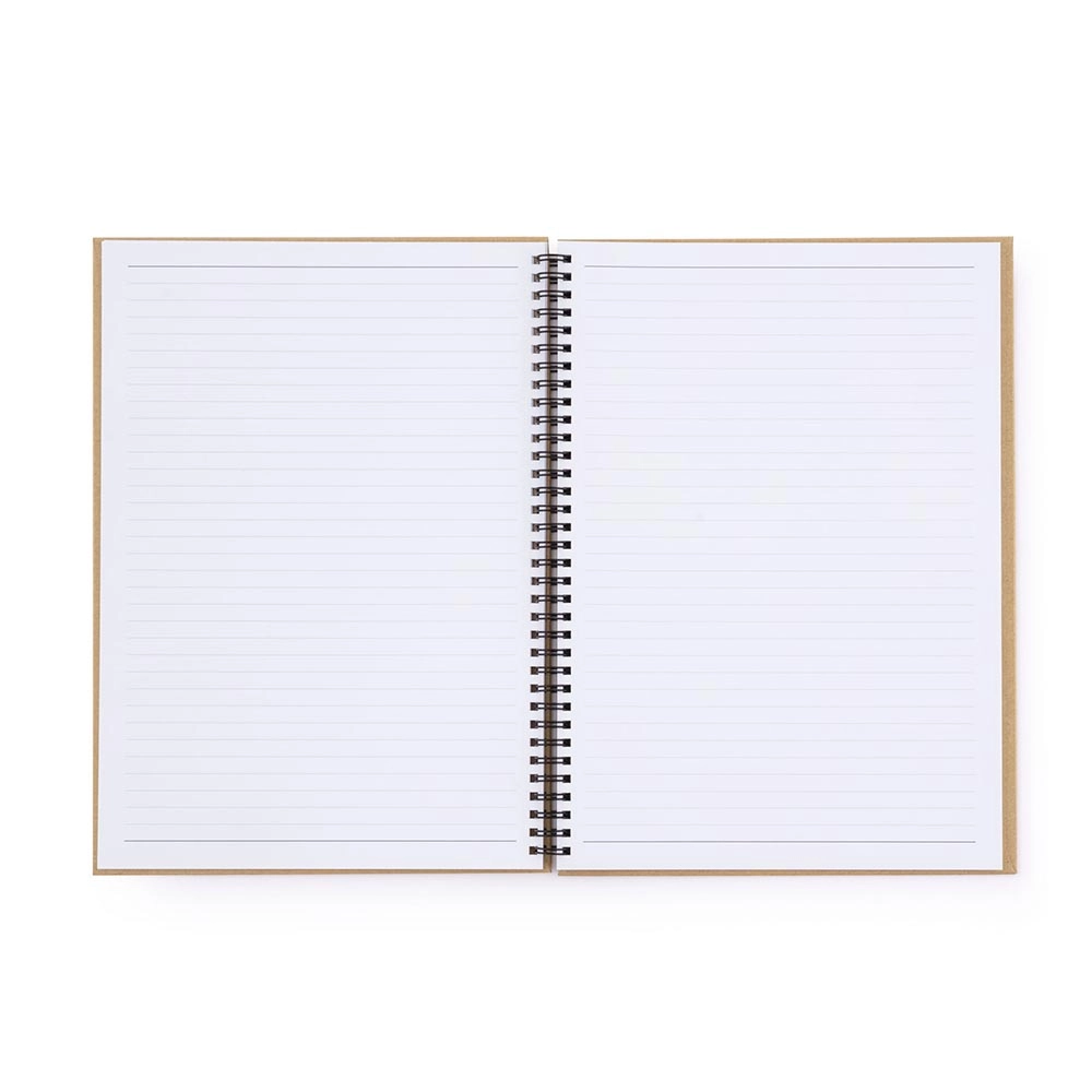 Denne elegante notesbog i naturlig kraftstil forener funktion og design. Med A4-format får du rigelig plads til noter, skitser og planlægning, mens den dobbelte metalspiral sikrer jævn bladring uden at hænge fast.