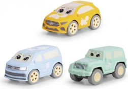 Hver bil fra Cozy Friends-kollektionen har et unikt udseende og farveskema, der spænder fra gul til blå og grønne farver.