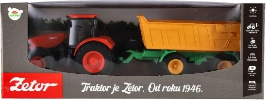 Traktor ZETOR med tipvogn med fjernbetjening, 42 cm, 2,4 GHz, lys og lyd, genopladeligt batteri
