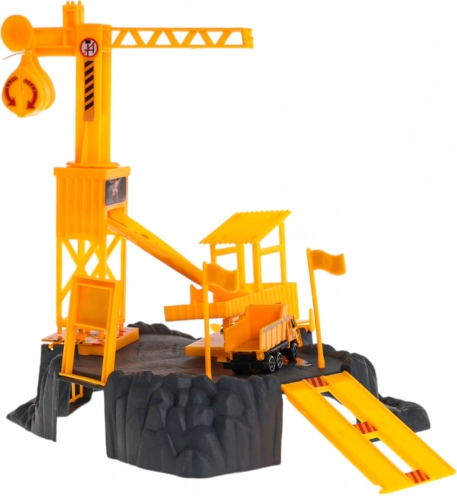 Sættet er lavet af kvalitetsplast i livlige farver, som tåler almindelig børneleg. Med praktiske funktioner som en 360° roterende kran, en åbningsbar port til “garagen” under kranen og en manuel bom kan børn nemt skabe deres egen byggeplads.