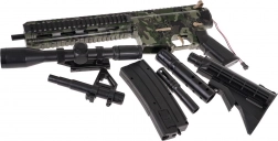 - Realistisk look og modulopbygget konstruktion – nem montering af løb, lyddæmper, magasin og kolbe.