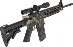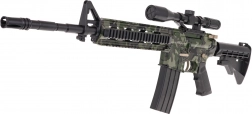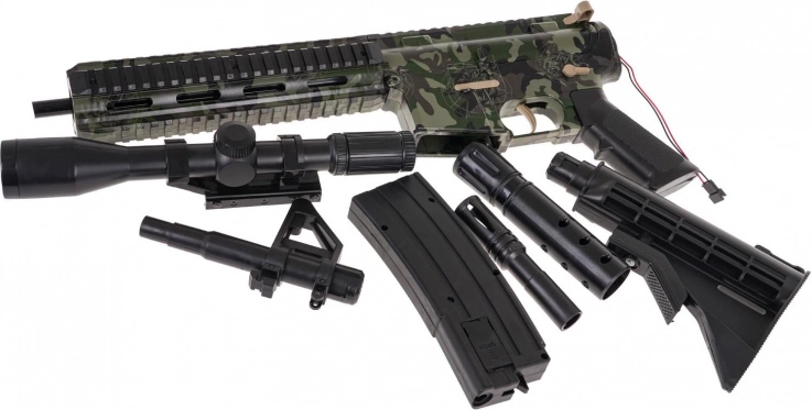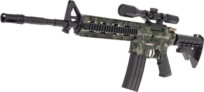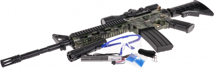 Oplev actionfyldt sjov med en realistisk M4-karabin til gelkugler til teenagere fra 14 år. Våbnet tilbyder manuel og automatisk skydetilstand, optik med zoom og masser af tilbehør inklusive lyddæmper, magasin og beskyttelsesbriller. Gelkuglerne sprænges ved træf og er sikre, og strømforsyningen sikres af et genopladeligt 7,4 V batteri med USB-opladning.