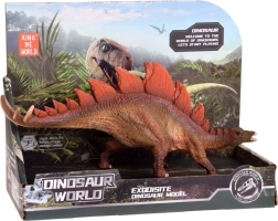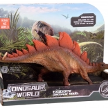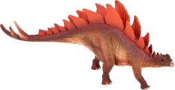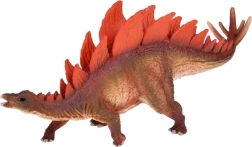 Stegosaurus-figuren er fremstillet med realistiske detaljer og teksturer og viser de karakteristiske røde plader på ryggen.