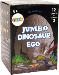 Ægget måler 10 cm x 10 cm x 15 cm og indeholder 12 dinosaurer.
