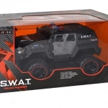 Oplev fart og actionfyldt kørsel med RC-bilen S.W.A.T. Police Pioneer på 39 cm i skala 1:12. Takket være den højere undervogn klarer den også kørsel i højere græs, den har blinkende blink og lys med tilstande, præcis finjustering af lige kørsel via trim og pålidelig strømforsyning med opladeradapter. Perfekt første RC-bil til børn fra 5 år.