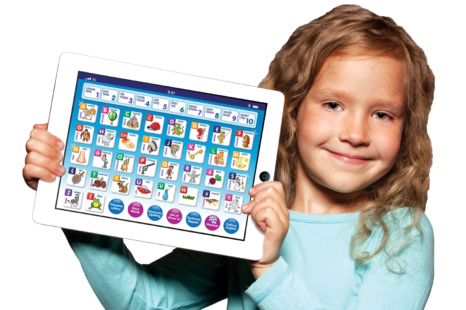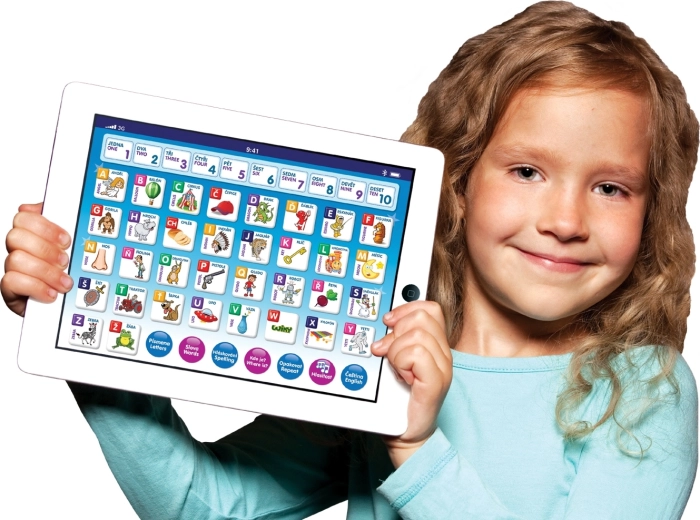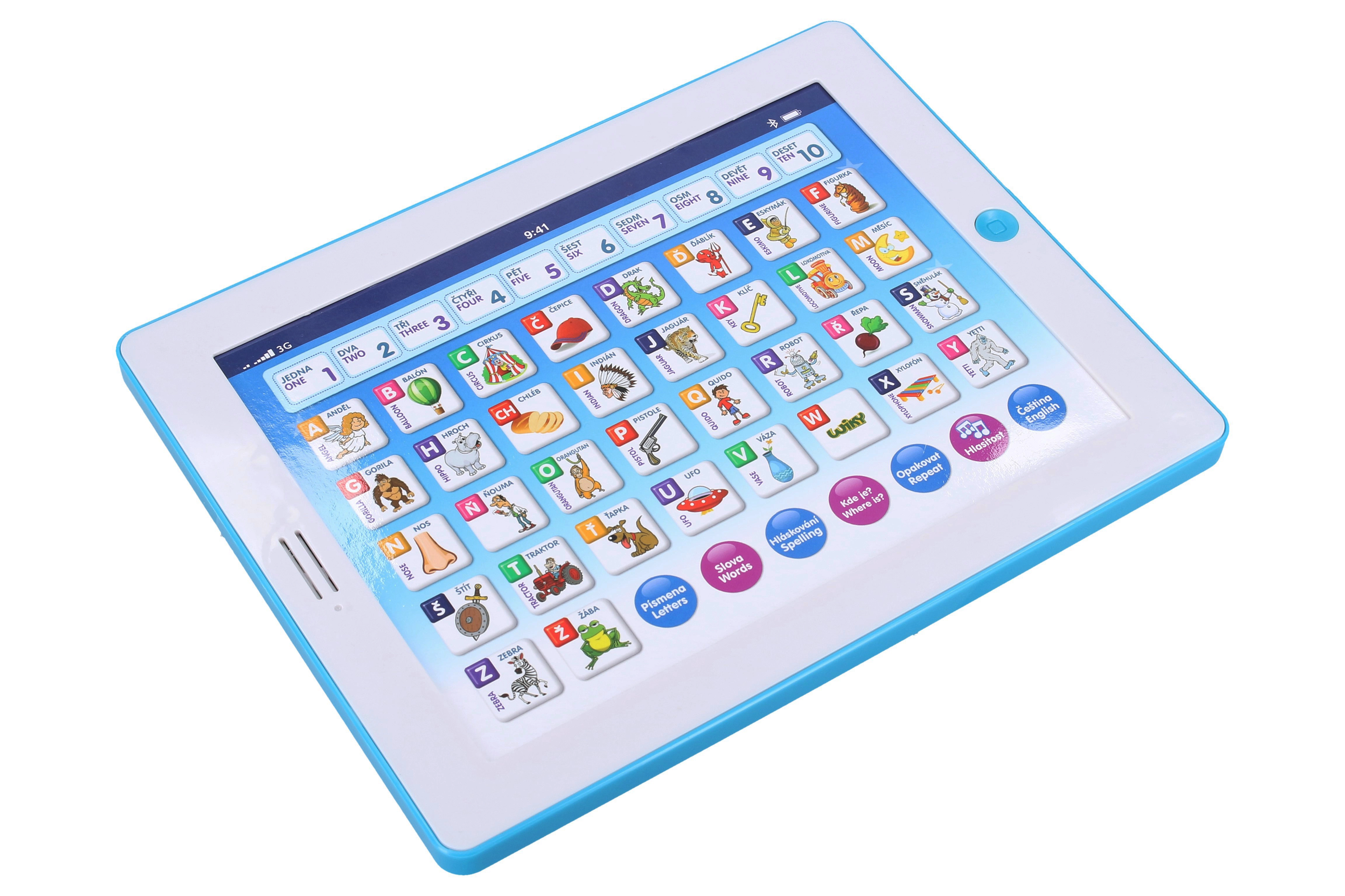 En sjov og lærerig børnetablet til små opdagere fra 3 år. Den underviser på tjekkisk og engelsk, hjælper med at mestre tælling fra 1 til 10, alfabetet og stavning. Indeholder underholdende lege med bogstaver, ord og tal og afspiller melodier.