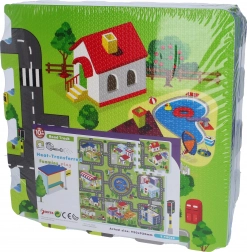 Delene er fuldt vaskbare og indeholder ikke skadelige stoffer. De kan bruges som en legeunderlag såvel som separate blokke til byggeri og kreativ leg. By-temaet stimulerer fantasien og udvikler både fin- og grovmotorik.