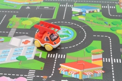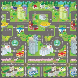 Skab et helt eget byunivers til børnene med et skumpuslespil-tæppe i størrelsen 118 × 118 cm. Blød og sikker overflade beskytter under leg, og ufarligt EVA-materiale er fuldt vaskbart og let at vedligeholde. Store dele 60 × 60 cm samles hurtigt og giver masser af sjov fra 10 måneder.