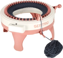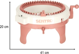 Denne manuelle strikkemaskine er det ideelle valg til de første skridt ind i håndarbejdets verden. Med 48 nåle strikker du nemt huer, halstørklæder og ærmevarmere – enten rundt eller som fladt panel. Det roterende håndsving sikrer jævn drift uden behov for batterier.