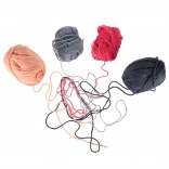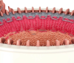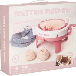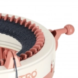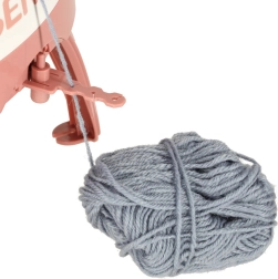 Sættet indeholder 4 farvede garnnøgler (mørkegrå, lysegrå, rosa, beige), nåle i forskellige størrelser og en hæklenål til nem afslutning og sammensyning. Stabile fødder og sugekopper hjælper med at holde maskinen sikkert på plads under arbejdet.