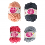 I pakken får du 4 garnnøgler, et sæt nåle og en hæklenål til nem kantafslutning og sammensyning.