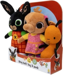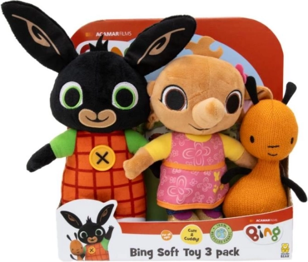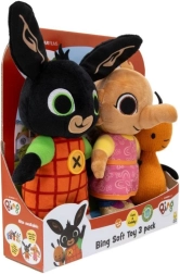 Oplev magien fra serien BING med et sødt sæt af tre plysbamser – Bing, Sula og Flop. De bløde plysdyr i materiale af høj kvalitet vil børn elske, og de kan nemt genopleve deres yndlingsscener fra tegnefilmen. Velegnet allerede fra 10 måneder.