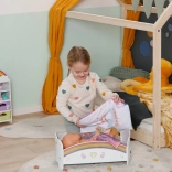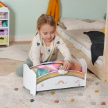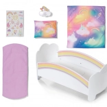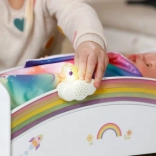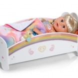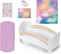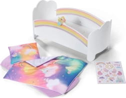 Den søde regnbueseng til BABY born-dukker forvandler puttetid til et magisk ritual. Den byder på natlys med vuggevise, vendbart sengetøj og design, der kan pyntes med klistermærker. Der er også en hemmelig rum under madrassen til små skatte.