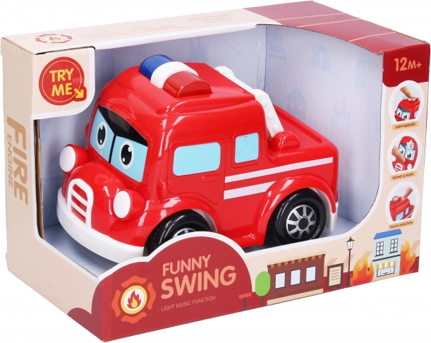 Brandbil med effekter i størrelsen 15 cm med frit bevægelige hjul og lys- og lydeffekter. Det ideelle legetøj til børn.