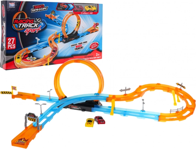 Racerbane med looping og to biler, ideel til børn fra 3 år. Kan samles af 27 dele.