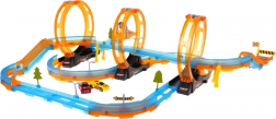 Nyd en spændende racerløbaktion med den store racerbane, der indeholder 48 dele. Dette sæt har tre vertikale loops og skarpe sving, som sikrer, at biler forbliver sikkert på banen takket være beskyttelsesbarriererne. Biler uden motor er inkluderet, hvilket garanterer masser af sjov.