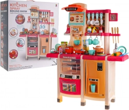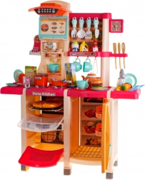Stort interaktivt børnelegekøkken med lys- og lydeffekter, ægte vandcirkulation fra hanen og rigt tilbehør på 65 dele. Det har bagbelyste kogeplader, drejeknapper, åbningsbare apparater og masser af opbevaringshylder – ideelt til kreativ leg for børn fra 3 år.